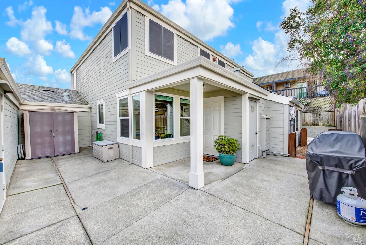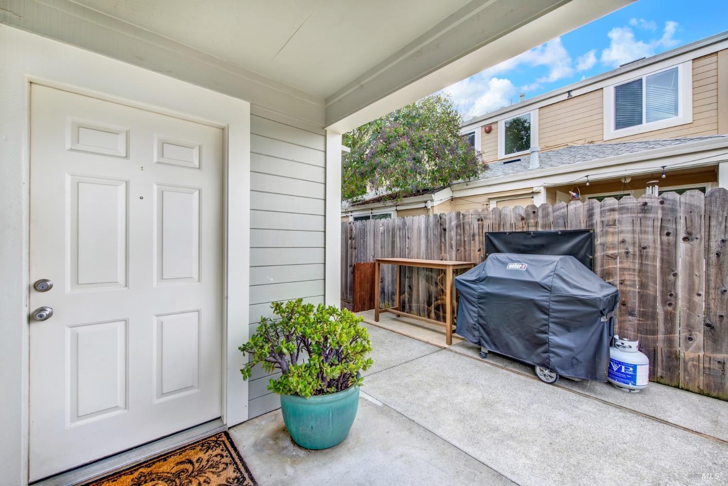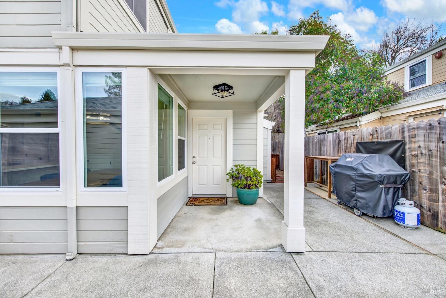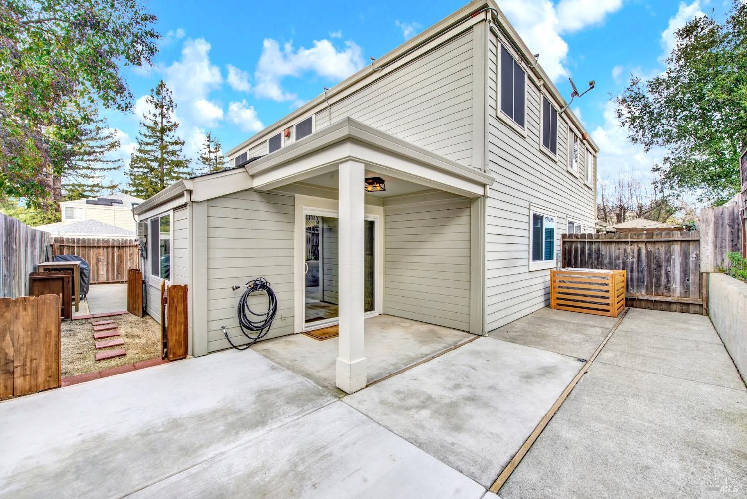 Welcome to this charming townhome located in the heart of Napa. This well-maintained home offers 1,407 square feet of comfortable living space, featuring a main floor primary and two additional bedrooms upstairs. Upon entering, you will be greeted by a bright and airy living area that seamlessly flows into the dining space and kitchen, creating an inviting atmosphere perfect for both relaxation and entertaining. The kitchen is designed for efficiency and functionality, equipped with ample storage and countertop space. One of the standout features of this home is the wrap-around patio, providing an ideal setting for outdoor dining or simply enjoying the pleasant Napa weather. With new windows (2021) New AC (2022) New water heater (2025) and solar (2022) this home offers energy efficiency and potential cost savings on utilities. An additional bonus is the detached two-car garage, providing ample space for parking and additional storage. With gated access to the river trail and close proximity to shopping, dining and necessities, this property is an excellent opportunity for those seeking a carefree and convenient lifestyle in Napa Valley.