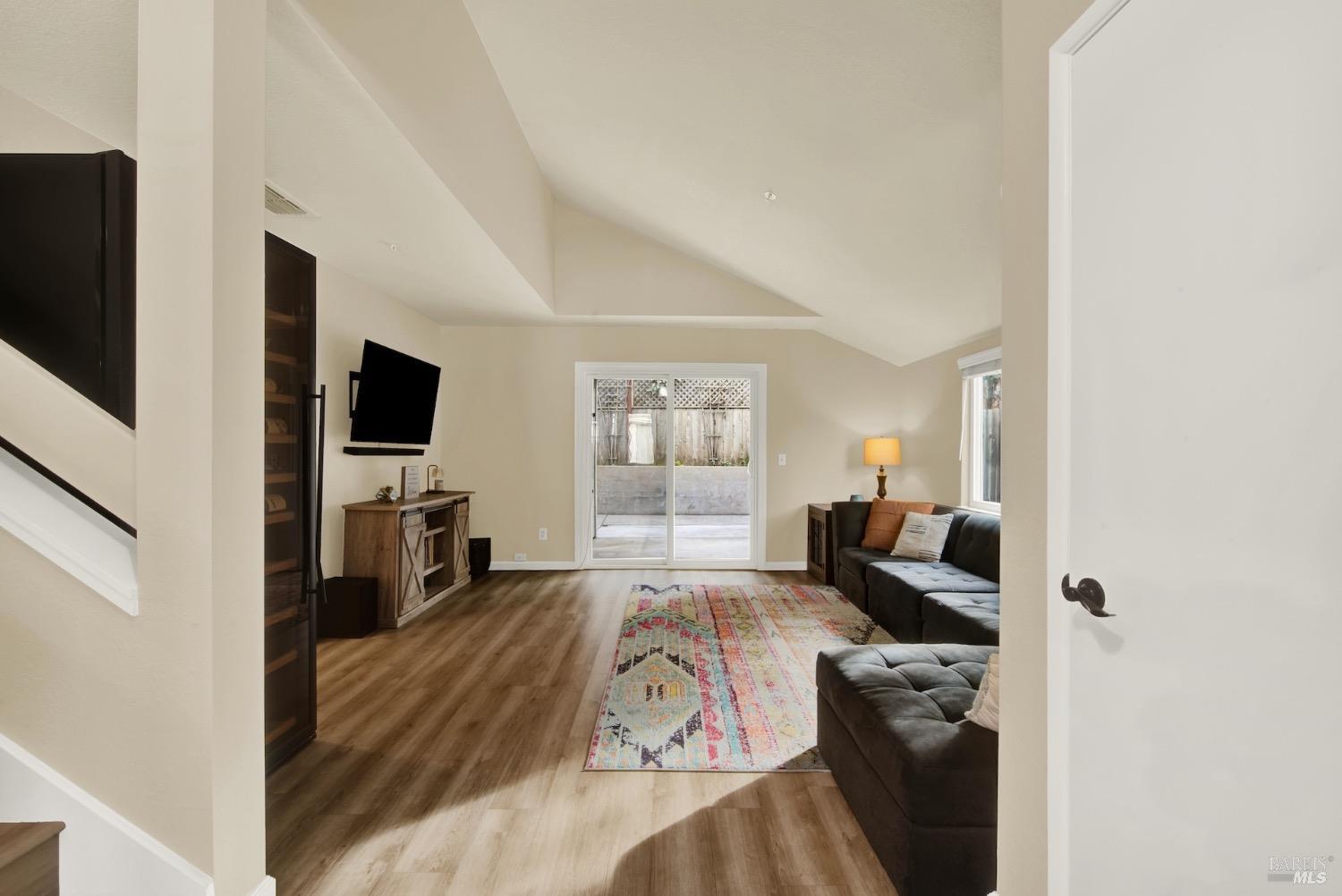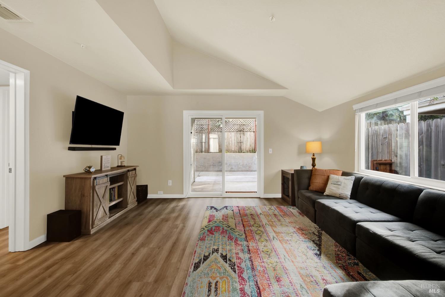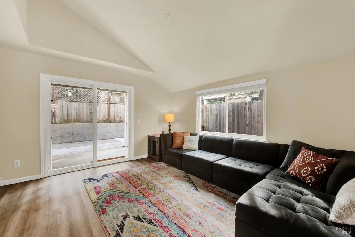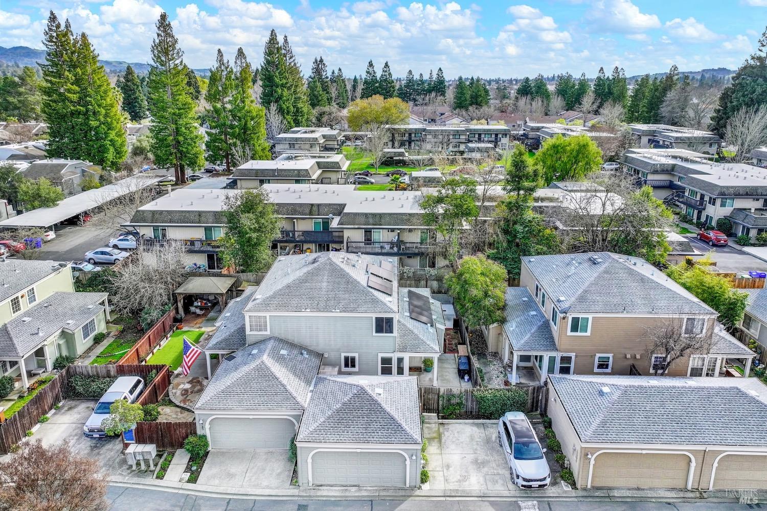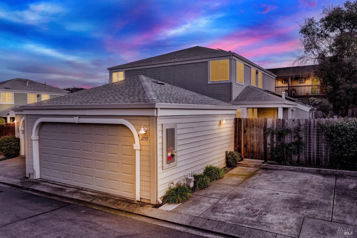 Welcome to this charming townhome located in the heart of Napa. This well-maintained home offers 1,407 square feet of comfortable living space, featuring a main floor primary and two additional bedrooms upstairs. Upon entering, you will be greeted by a bright and airy living area that seamlessly flows into the dining space and kitchen, creating an inviting atmosphere perfect for both relaxation and entertaining. The kitchen is designed for efficiency and functionality, equipped with ample storage and countertop space. One of the standout features of this home is the wrap-around patio, providing an ideal setting for outdoor dining or simply enjoying the pleasant Napa weather. With new windows (2021) New AC (2022) New water heater (2025) and solar (2022) this home offers energy efficiency and potential cost savings on utilities. An additional bonus is the detached two-car garage, providing ample space for parking and additional storage. With gated access to the river trail and close proximity to shopping, dining and necessities, this property is an excellent opportunity for those seeking a carefree and convenient lifestyle in Napa Valley.
