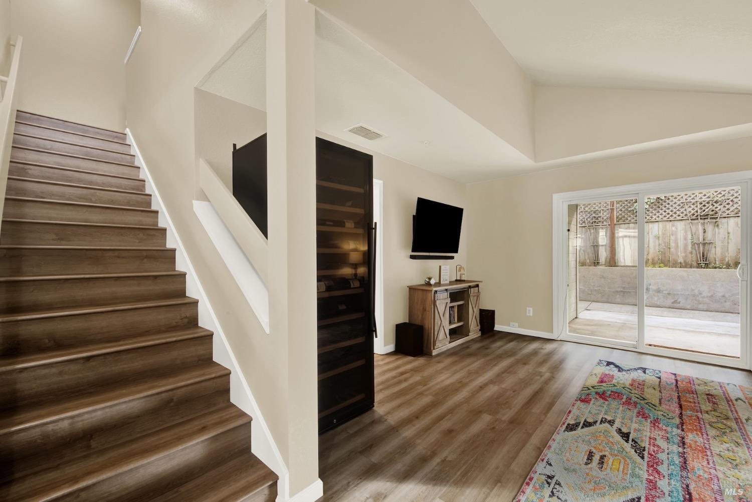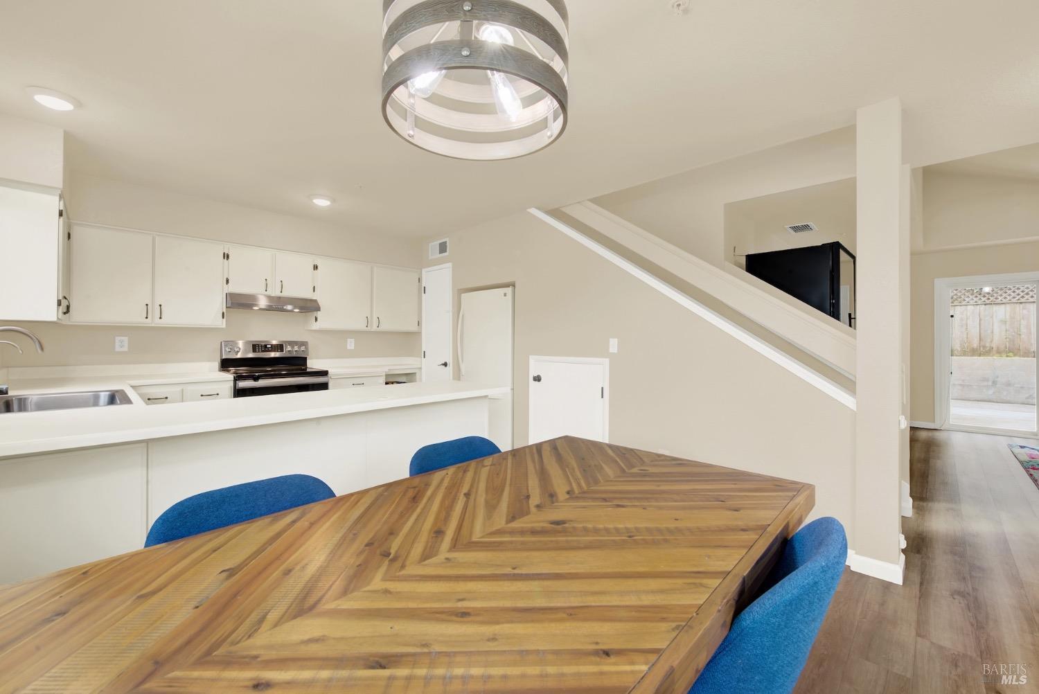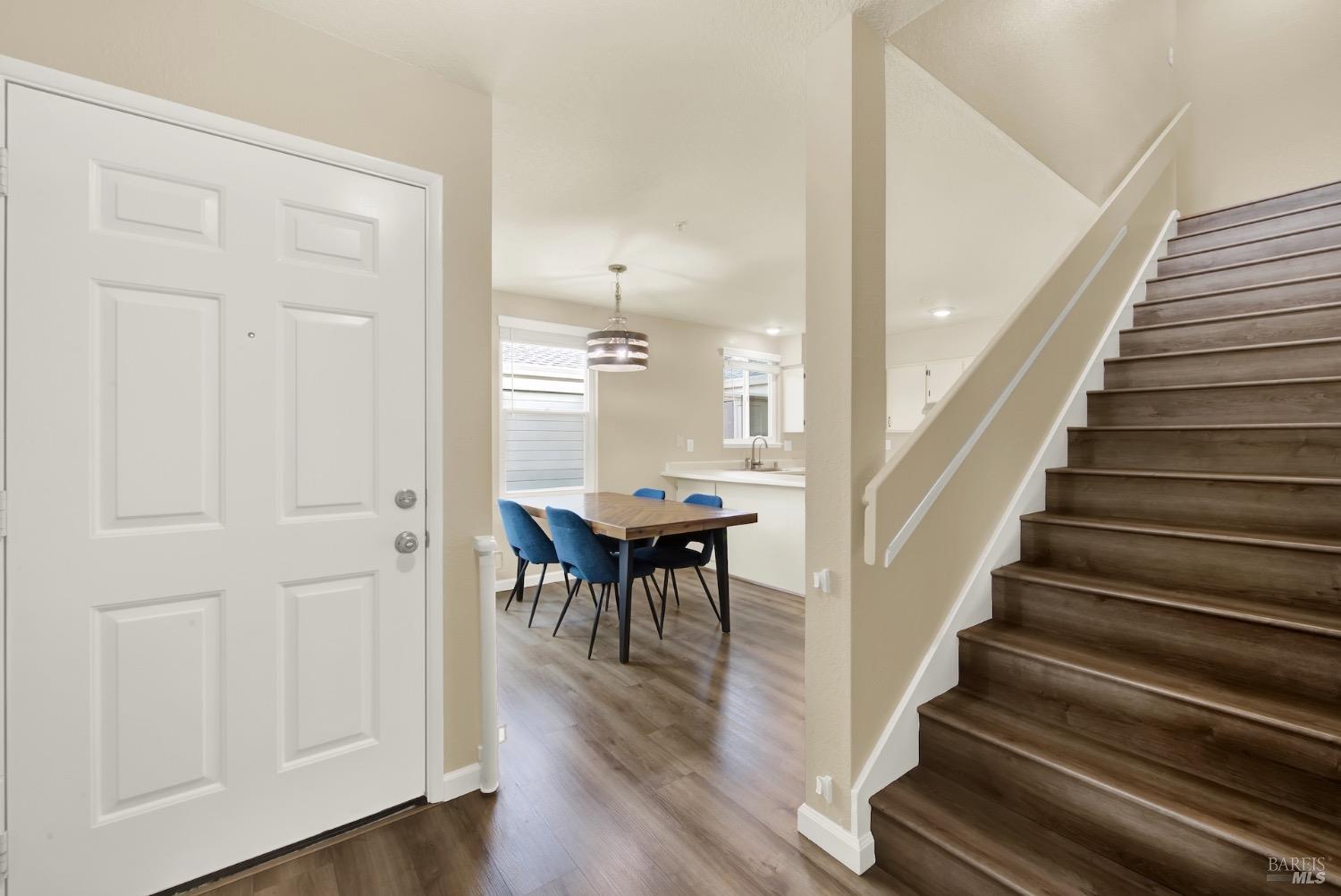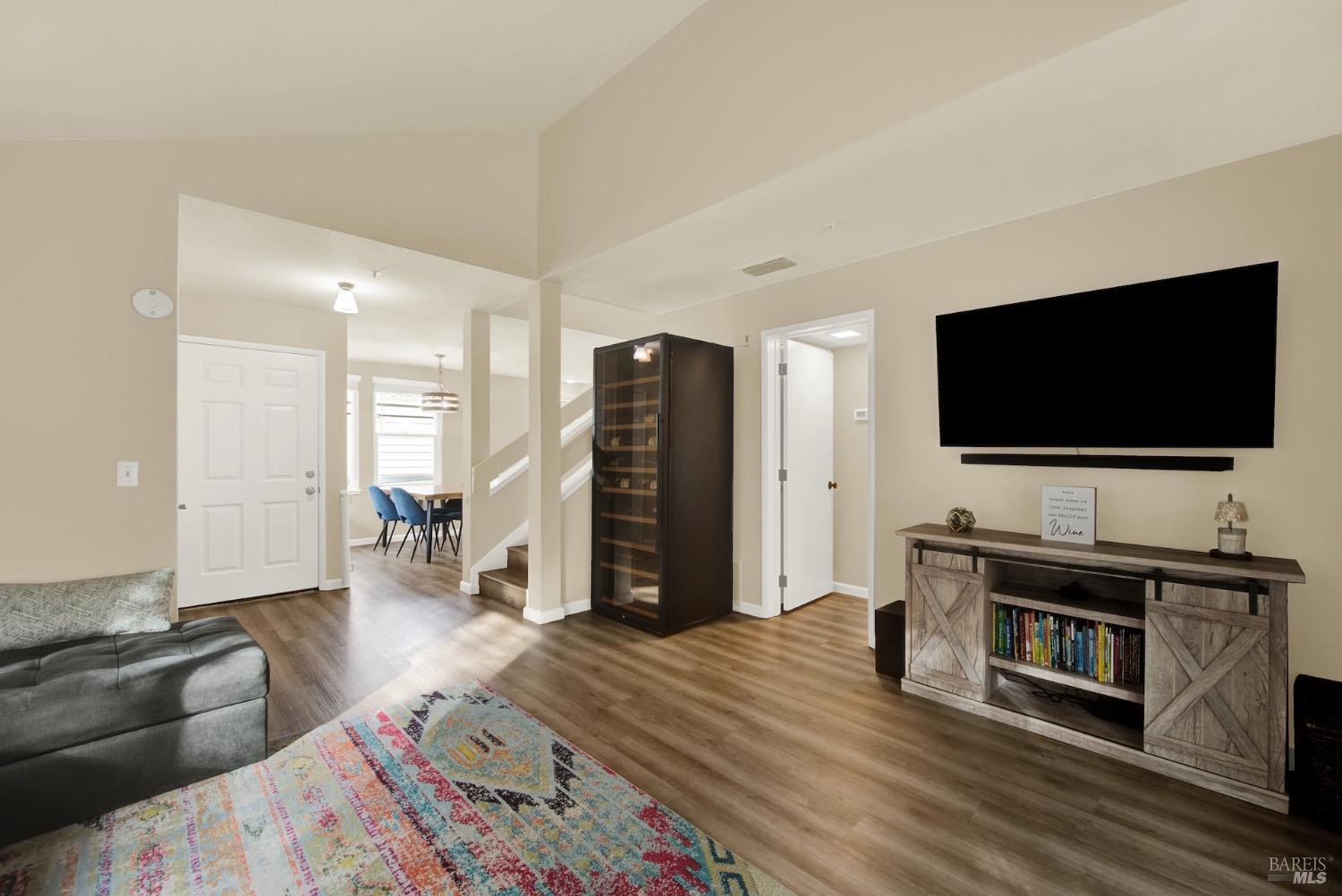 Welcome to this charming townhome located in the heart of Napa. This well-maintained home offers 1,407 square feet of comfortable living space, featuring a main floor primary and two additional bedrooms upstairs. Upon entering, you will be greeted by a bright and airy living area that seamlessly flows into the dining space and kitchen, creating an inviting atmosphere perfect for both relaxation and entertaining. The kitchen is designed for efficiency and functionality, equipped with ample storage and countertop space. One of the standout features of this home is the wrap-around patio, providing an ideal setting for outdoor dining or simply enjoying the pleasant Napa weather. With new windows (2021) New AC (2022) New water heater (2025) and solar (2022) this home offers energy efficiency and potential cost savings on utilities. An additional bonus is the detached two-car garage, providing ample space for parking and additional storage. With gated access to the river trail and close proximity to shopping, dining and necessities, this property is an excellent opportunity for those seeking a carefree and convenient lifestyle in Napa Valley.