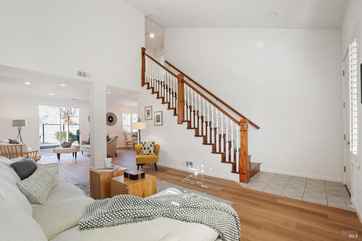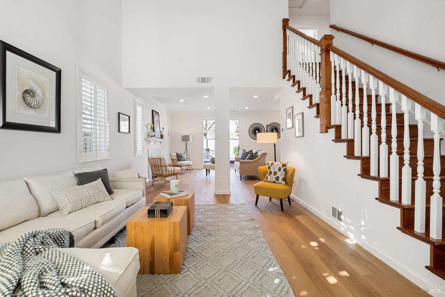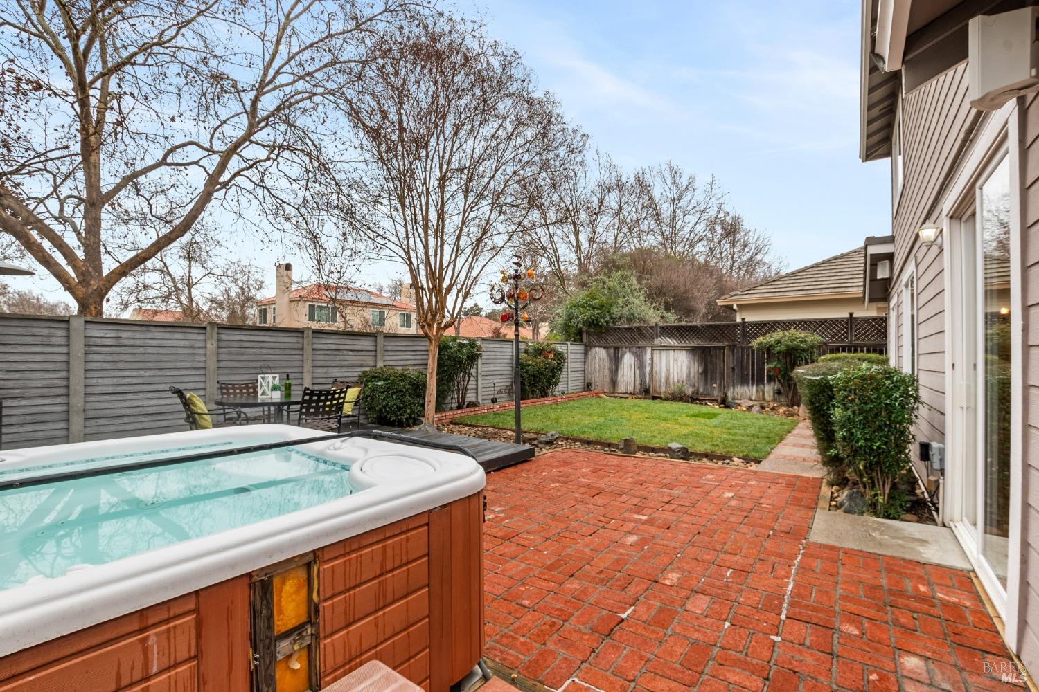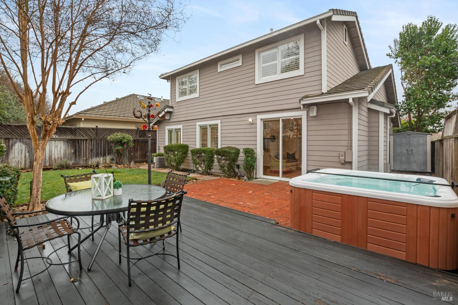 Located in North Napa, this 3-bedroom, 2.5-bathroom gem is nestled on a quiet street in the sought-after Wine Country Estates subdivision. Freshly painted with upgraded LED lighting and new LVT flooring on the main level this home is move-in ready and radiates a bright, welcoming ambiance. The kitchen has been thoughtfully updated with granite countertops and stainless steel appliances, including a Viking range, hot water on-demand and a generous pantry closet, and seamlessly flows into the dining room and family room. Anchored by a cozy fireplace, the family room opens to a private yard complete with a hot tub, making it an ideal space for entertaining or unwinding. The upstairs bedrooms feature plush new carpeting with the original wood floors extending up the stairs into the primary suite for a touch of classic elegance. Situated in a wonderful North Napa location, you'll enjoy close proximity to the Las Flores Community Center, Osprey Seafood & Ranch Markets, and Il Posto Trattoria, with Trader Joe's, Whole Foods, and scenic Alston Park just minutes away. Combining timeless elegance with wine country charm, this home offers a tranquil retreat while keeping you close to all the best North Napa has to offer.