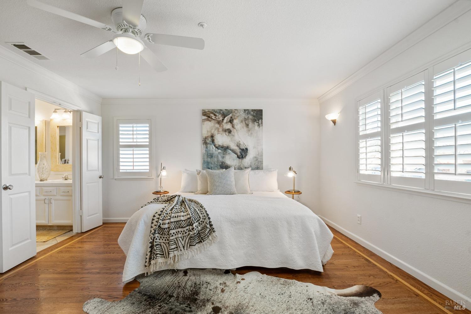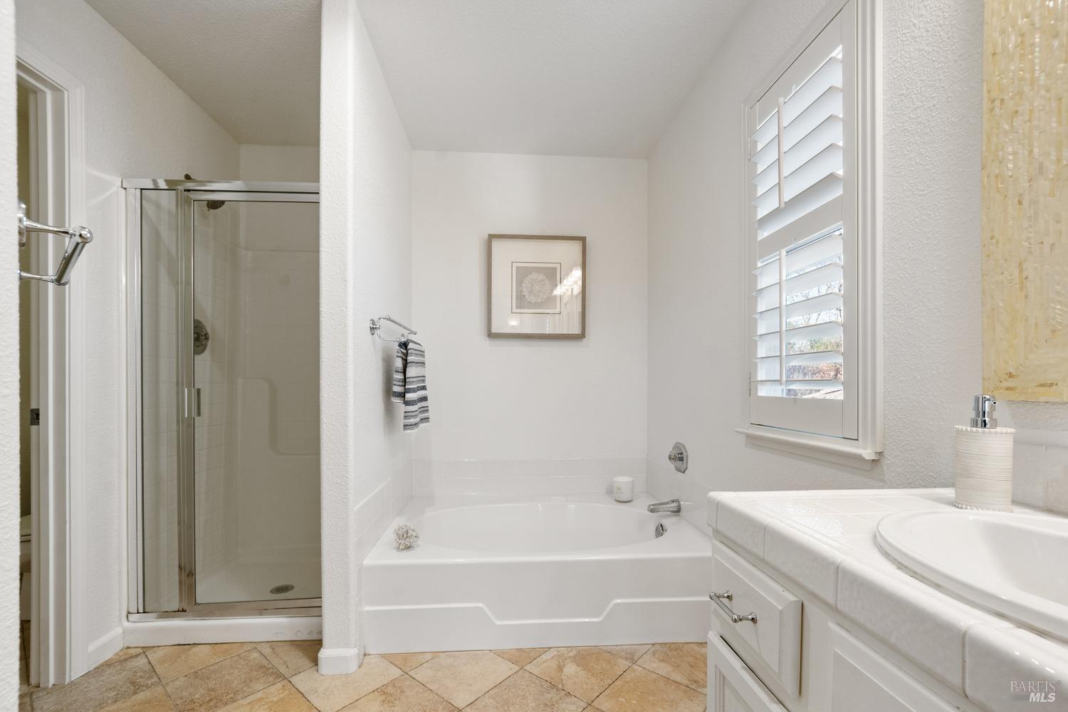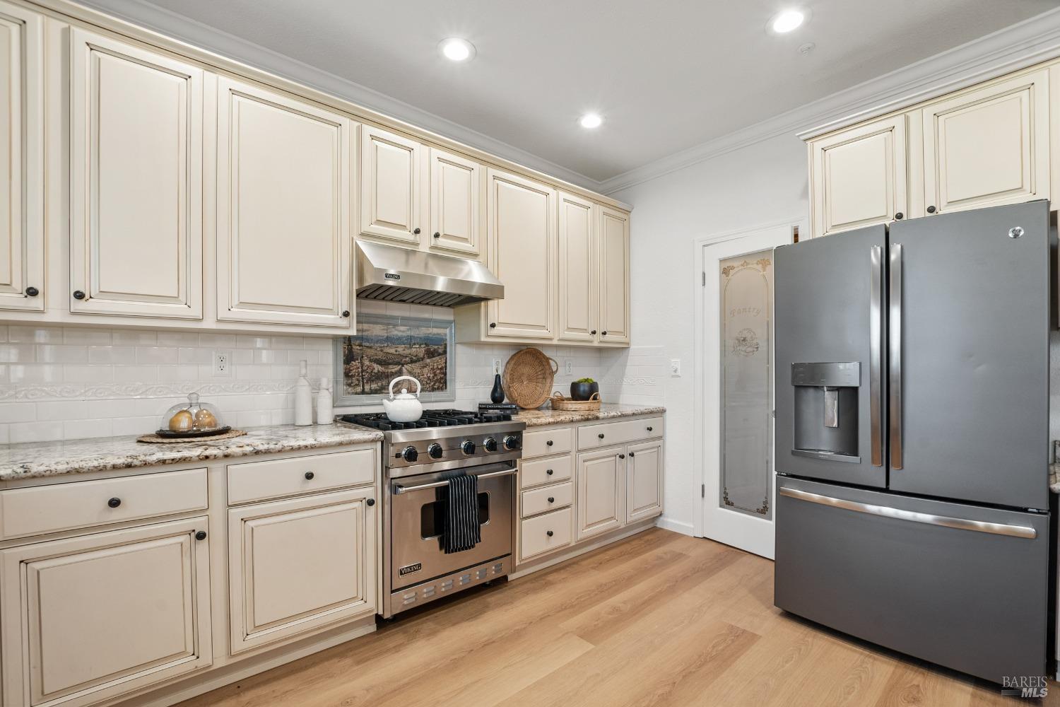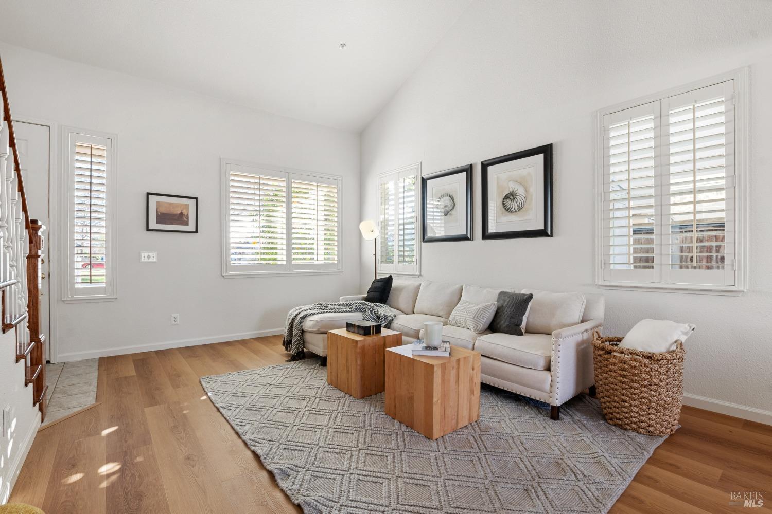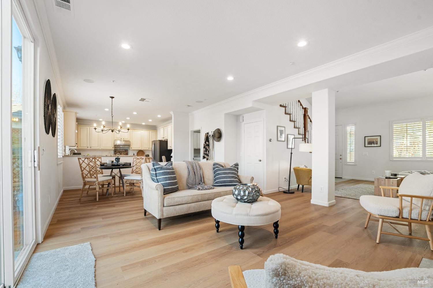 Located in North Napa, this 3-bedroom, 2.5-bathroom gem is nestled on a quiet street in the sought-after Wine Country Estates subdivision. Freshly painted with upgraded LED lighting and new LVT flooring on the main level this home is move-in ready and radiates a bright, welcoming ambiance. The kitchen has been thoughtfully updated with granite countertops and stainless steel appliances, including a Viking range, hot water on-demand and a generous pantry closet, and seamlessly flows into the dining room and family room. Anchored by a cozy fireplace, the family room opens to a private yard complete with a hot tub, making it an ideal space for entertaining or unwinding. The upstairs bedrooms feature plush new carpeting with the original wood floors extending up the stairs into the primary suite for a touch of classic elegance. Situated in a wonderful North Napa location, you'll enjoy close proximity to the Las Flores Community Center, Osprey Seafood & Ranch Markets, and Il Posto Trattoria, with Trader Joe's, Whole Foods, and scenic Alston Park just minutes away. Combining timeless elegance with wine country charm, this home offers a tranquil retreat while keeping you close to all the best North Napa has to offer.